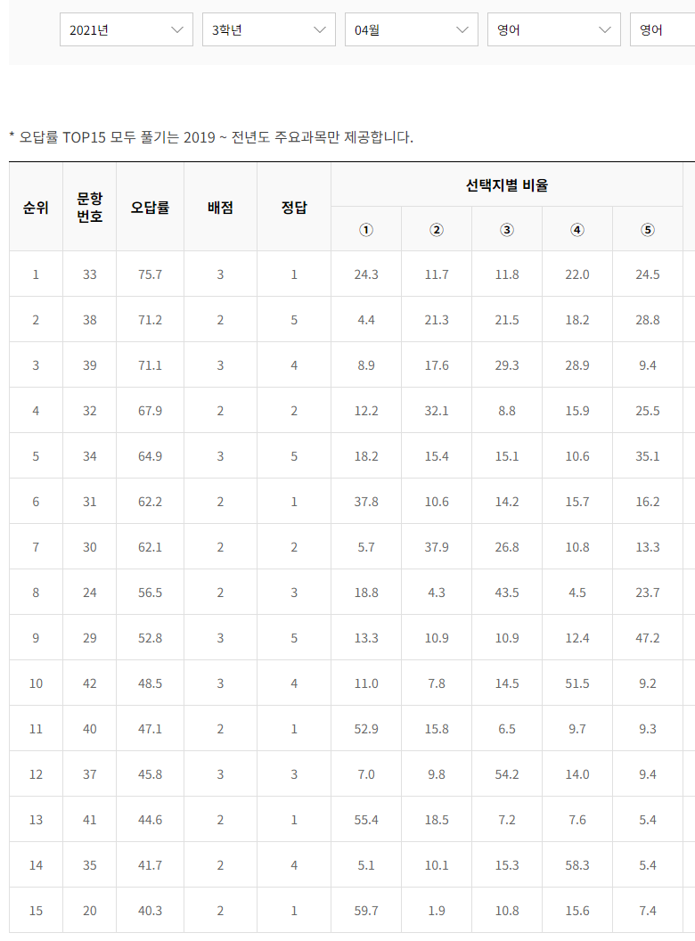 오답률 TOP 15