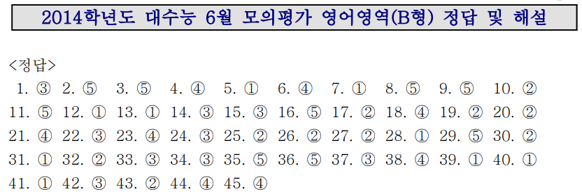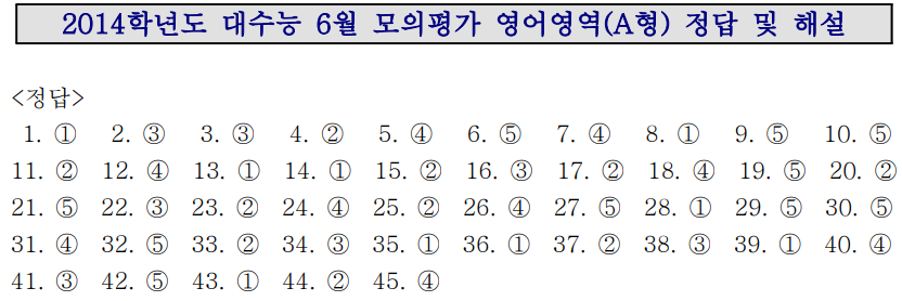 | [2014년 고3 6월] 영어 모의고사 문제지, 문제정답, 오답률, 영어듣기파일, 대본 (0) | 2024.04.19 |