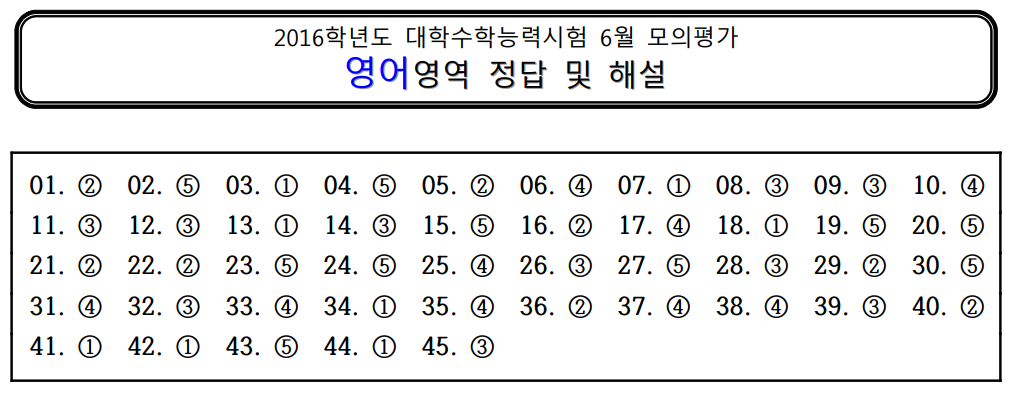 | [2016년 고3 6월] 영어 모의고사 문제지, 문제정답, 오답률, 영어듣기파일, 대본 (0) | 2024.04.20 |