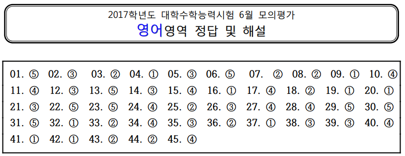 | [2017년 고3 6월] 영어 모의고사 문제지, 문제정답, 오답률, 영어듣기파일, 영어듣기대본 (0) | 2024.04.20 |