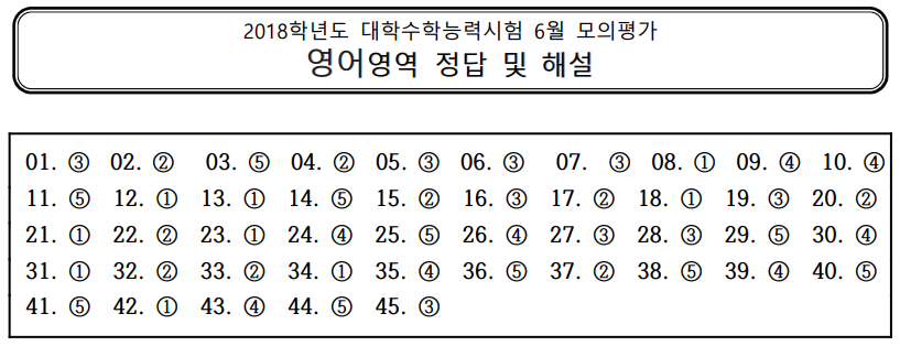 | [2018년 고3 6월] 영어 모의고사 문제지, 문제정답, 오답률, 영어듣기파일, 영어듣기대본 (0) | 2024.04.20 |