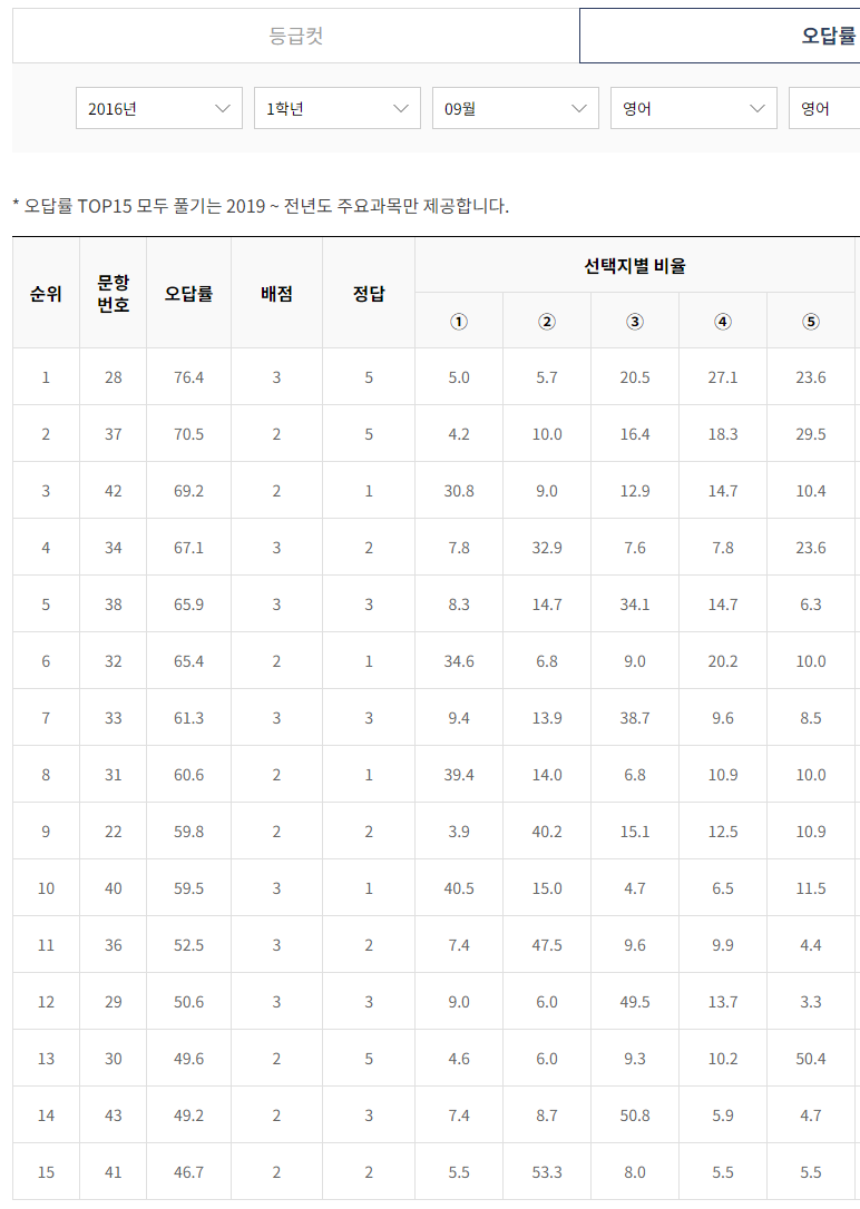 | [2017년 고1 9월] 영어 모의고사 문제지, 문제정답, 오답률, 영어듣기파일, 대본 (0) | 2024.05.28 |