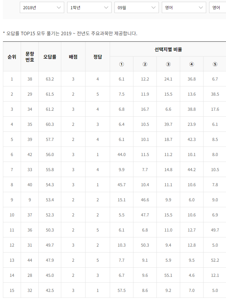 | [2019년 고1 9월] 영어 모의고사 문제지, 문제정답, 오답률, 영어듣기파일, 대본 (0) | 2024.05.30 |