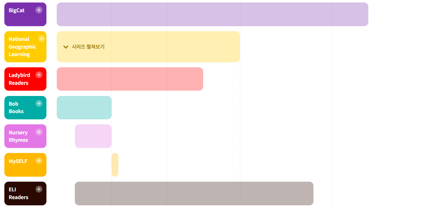 ORT(옥스퍼드 리딩 트리)나 빅캣 시리즈 같은 책들은 이야기 형태로 되어 있어서 읽는 재미도 있고, 영어 문장 구조도 쉽게 익힐 수 있어요.