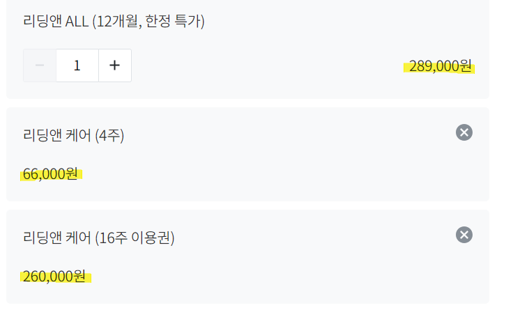 리딩앤 케어(4달) 26만원(한달에 6만5천원)