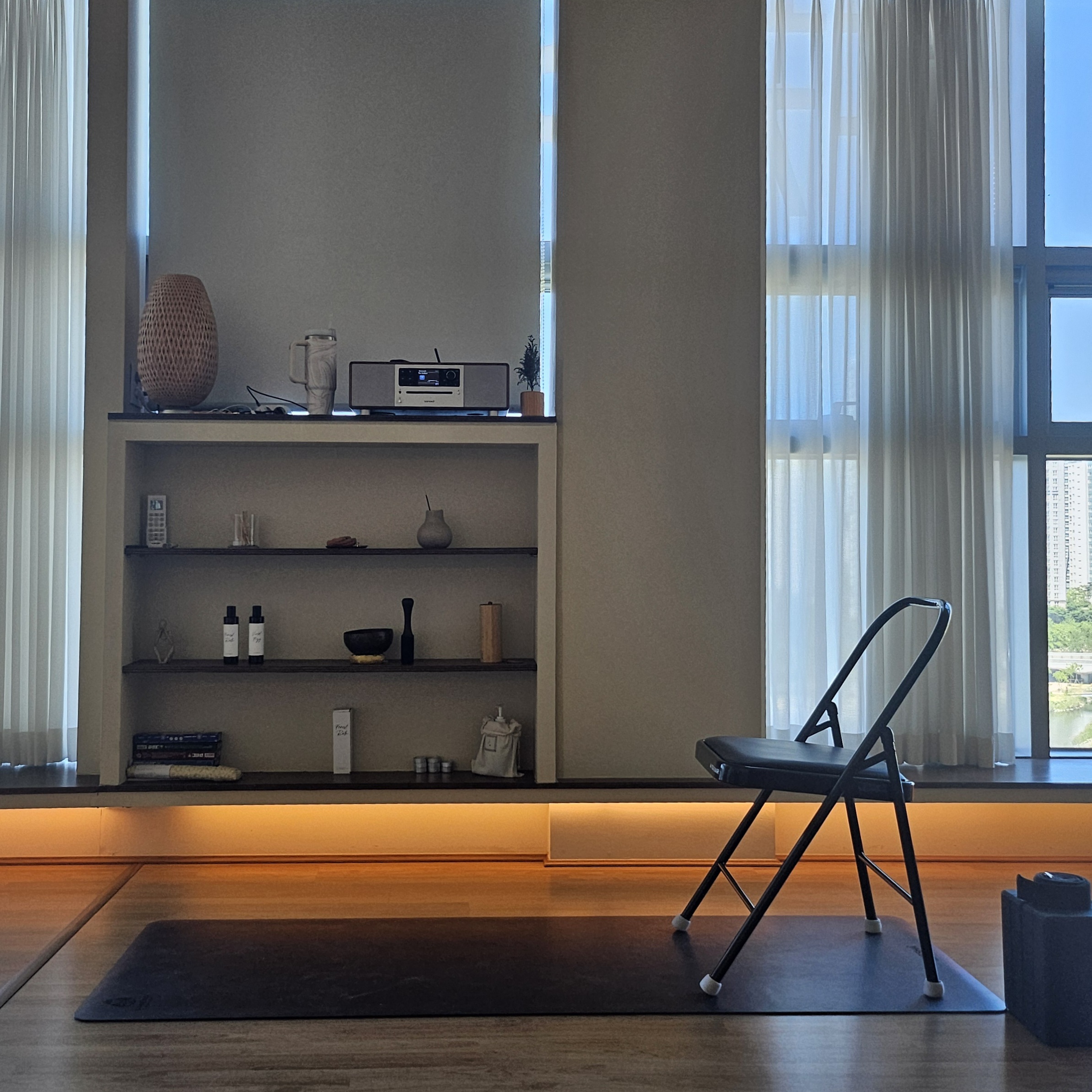 인테리어가 디테일이 살아 있다고 하나요? 요가원 이름이 고요함 요가인데, 정말 인테리어에서도 고요함(?)을 느낄 수 있었어요, 인테리어를 보면 마음이 차분해지는 느낌? 우리가 호텔 같은데 가면 너무 정리가 잘되어있어서 기분이 좋잖아요, 딱 그런 느낌이 드는 거같아요. 아마 원장님은 엄청난 인테리어 고수 같다는 생각이 듭니다....
