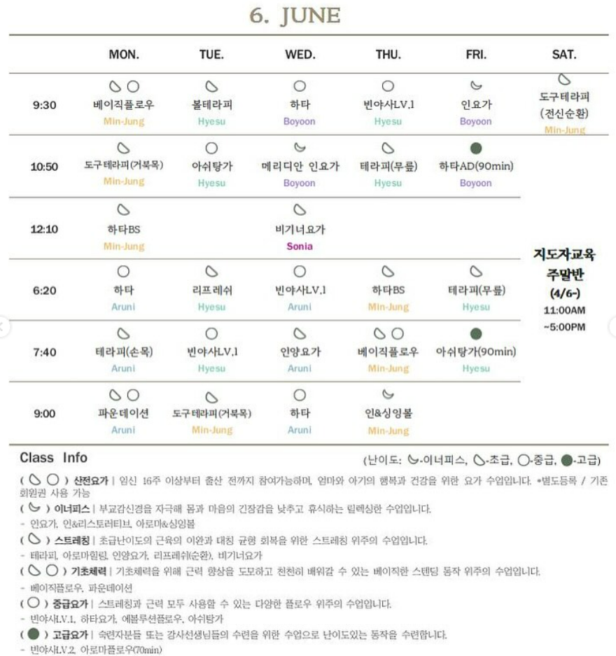 [하남요가/미사요가] 고요함요가, 2024년 6월 시간표