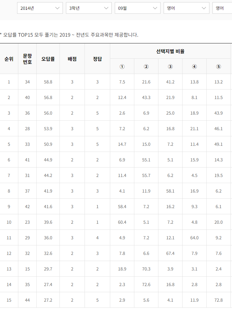 | [2019년 고3 9월] 영어 모의고사 문제지, 문제정답, 오답률, 영어듣기파일, 대본 (0) | 2024.07.24 |