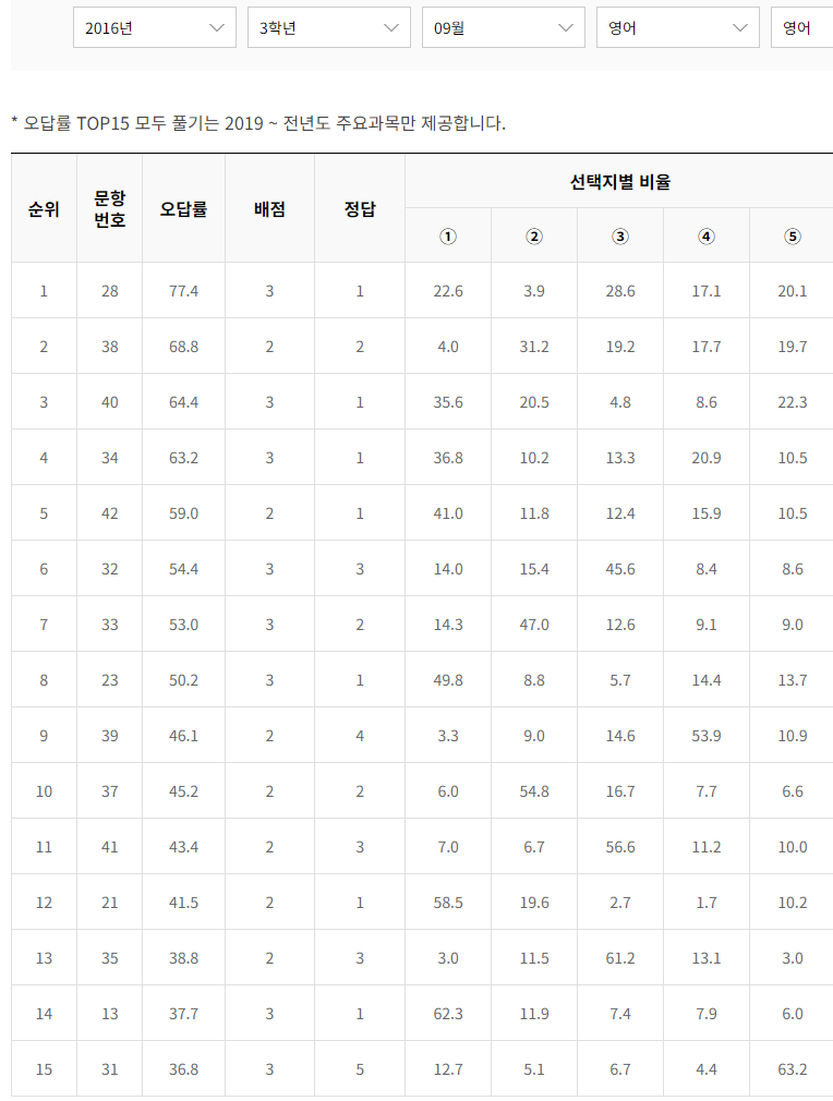 | [2019년 고3 9월] 영어 모의고사 문제지, 문제정답, 오답률, 영어듣기파일, 대본 (0) | 2024.07.24 |