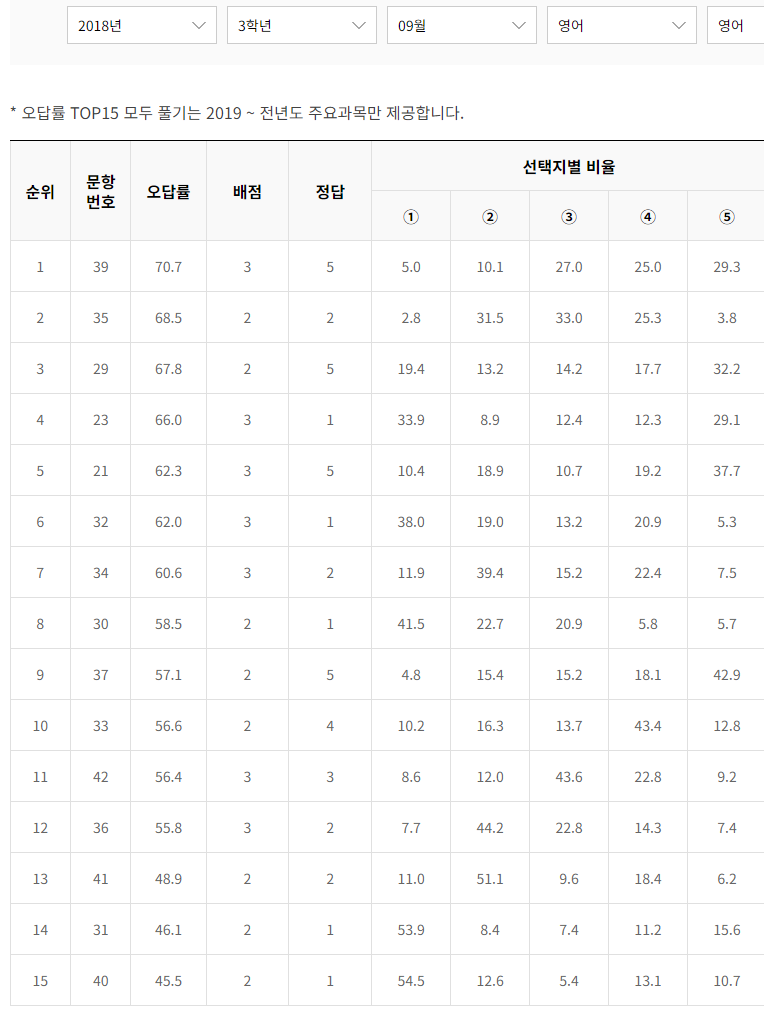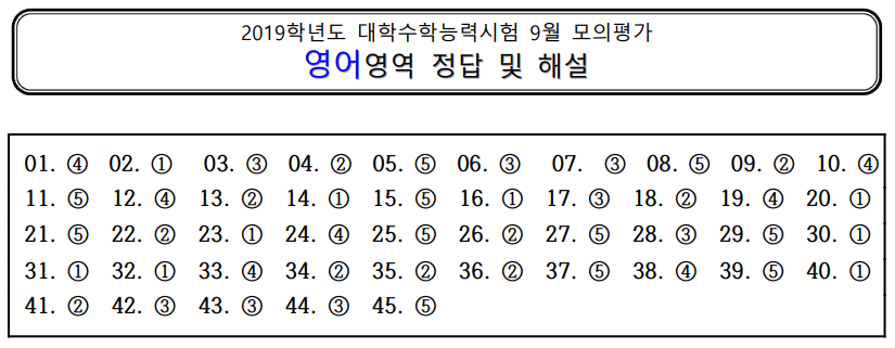 | [2019년 고3 9월] 영어 모의고사 문제지, 문제정답, 오답률, 영어듣기파일, 대본 (0) | 2024.07.24 |