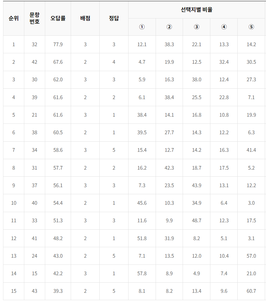 오답률 TOP 15
