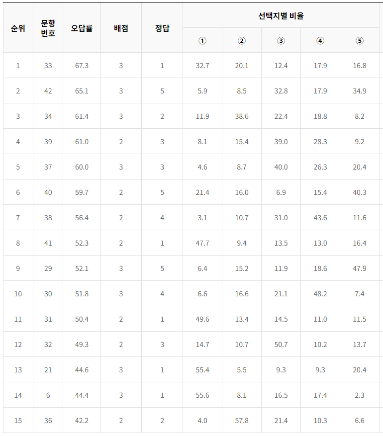 오답률 TOP 15