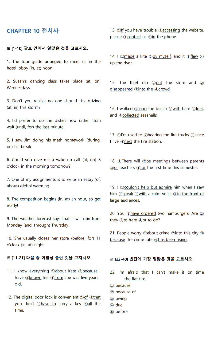 전치사 문제지 범위