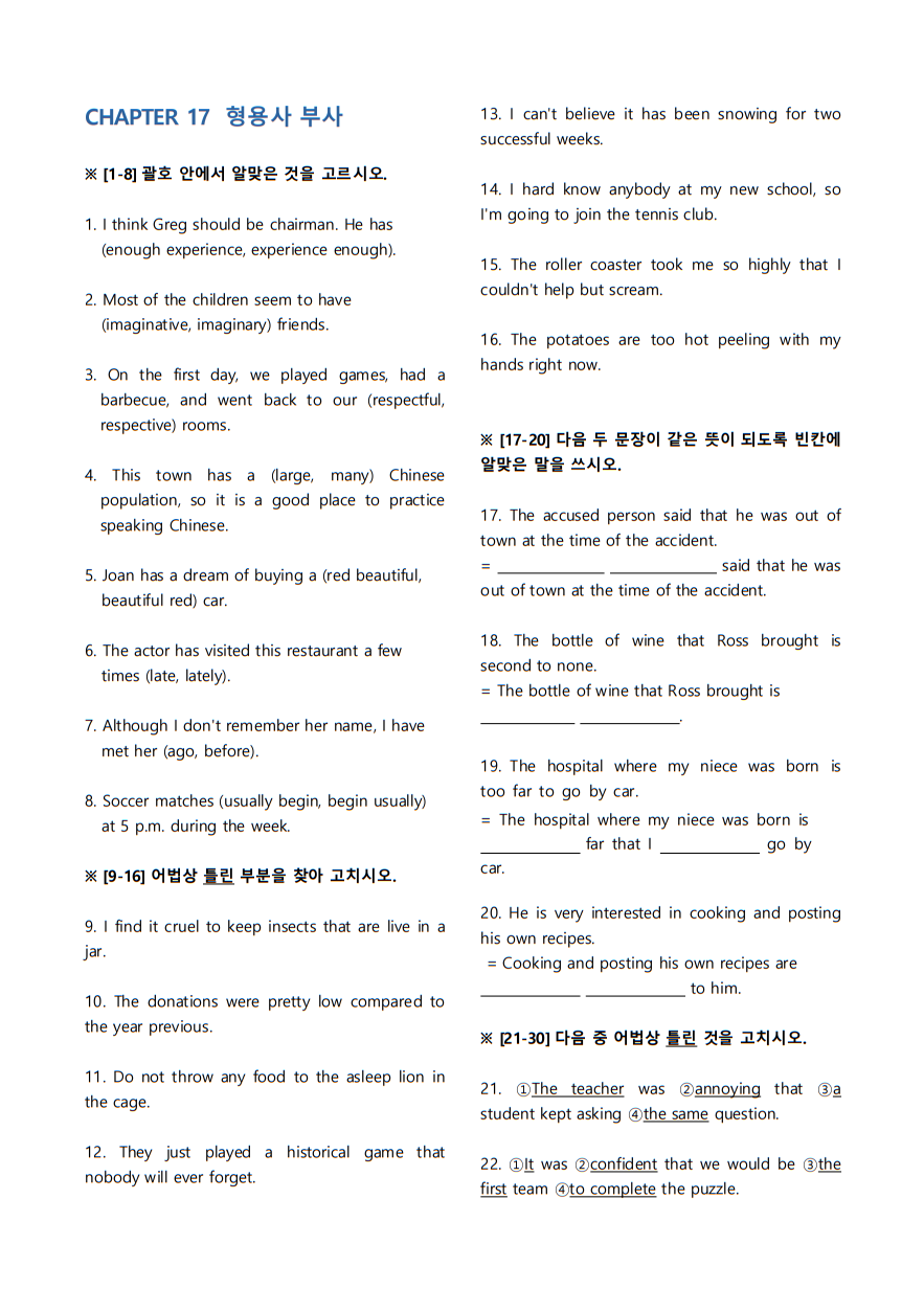 형용사 부사 문제지 범위