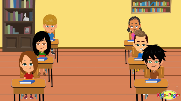 학생들: 벨이 울리고있어 수업이 막 시작하겠다. 우리는 안으로 들어가야해. 서둘러!