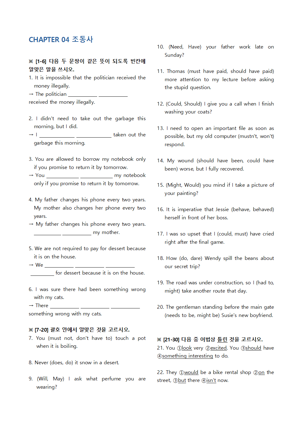 ※ [21-30] 다음 중 어법상 틀린 것을 찾아 고치시오.