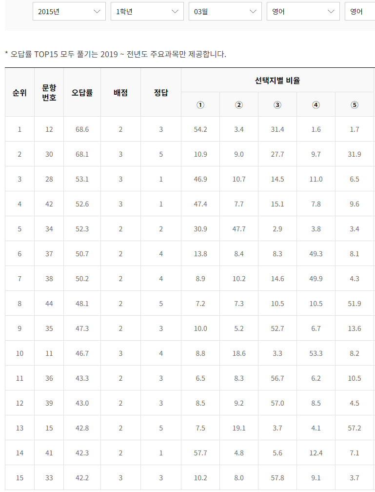 | [2019년 고1 3월] 영어 모의고사 문제지, 정답, 오답률 top15 (0) | 2023.09.18 |